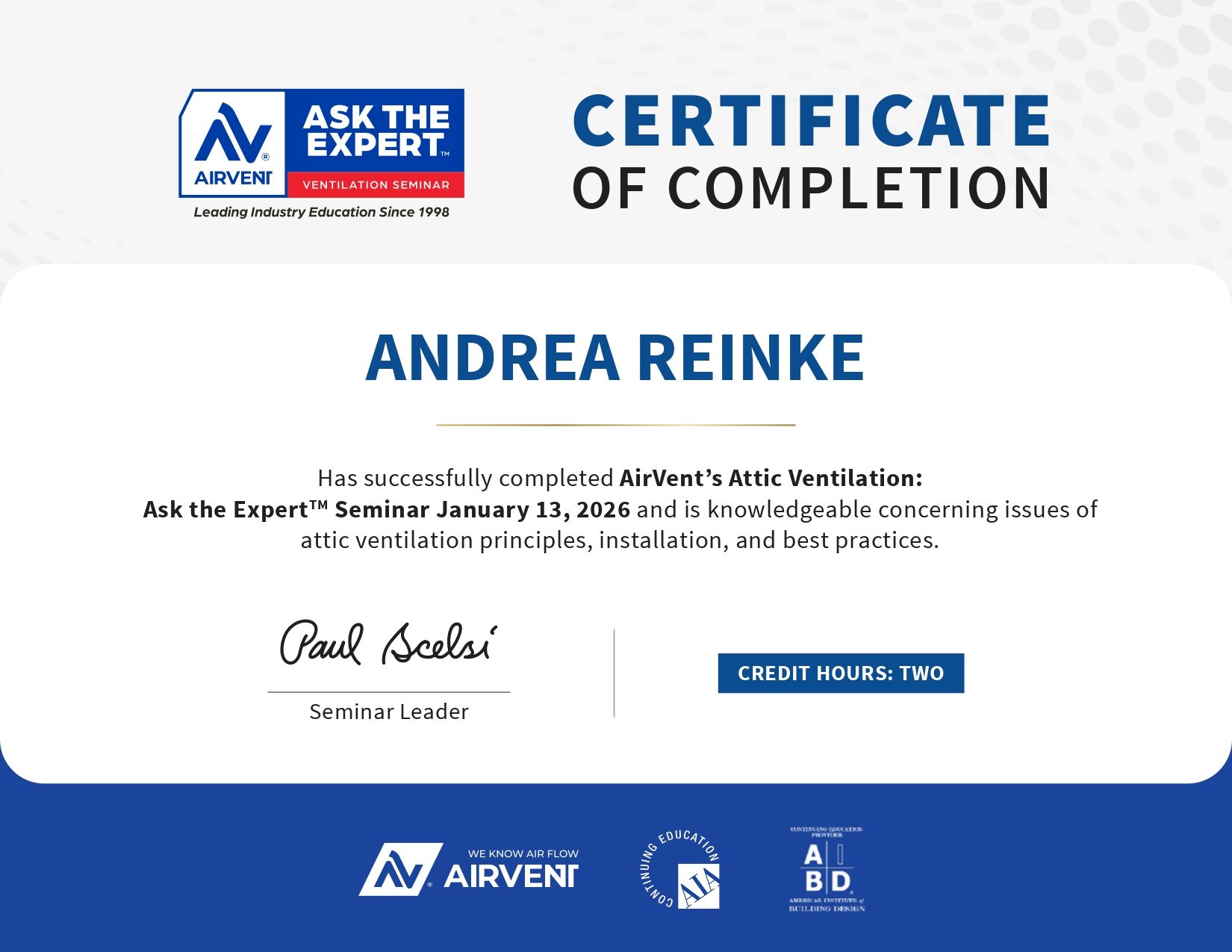 Andrea and her team were phenomenal though each step of the process. The process with our insurance company was terrible but Andrea went the extra mile and did most of their work to get everything correct. The workers did an amazing job being respectful and they work as a well oiled machine. I can't say enough from inspection to cleanup it was an amazing experience. Our roof is beautiful.